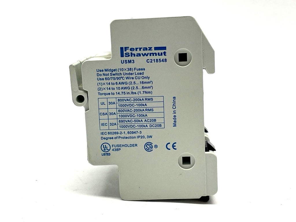 Ferraz Shawmut USM3 C218548 Fuse Holder 30A 690VAC w/ ATQ10 Fuses