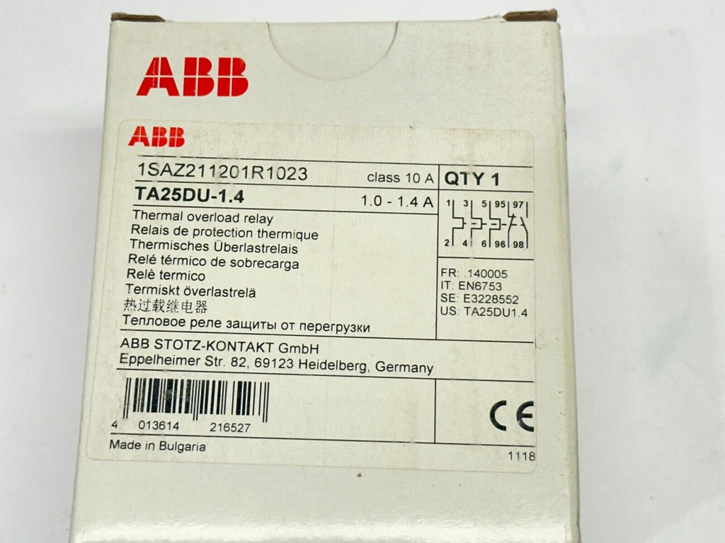 ABB 1SAZ211201R1023 TA25DU-1.4 Thermal Overload Relay 1.0-1.4 690V