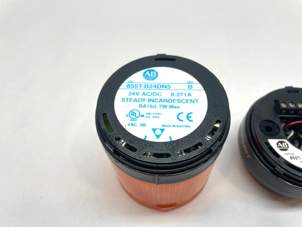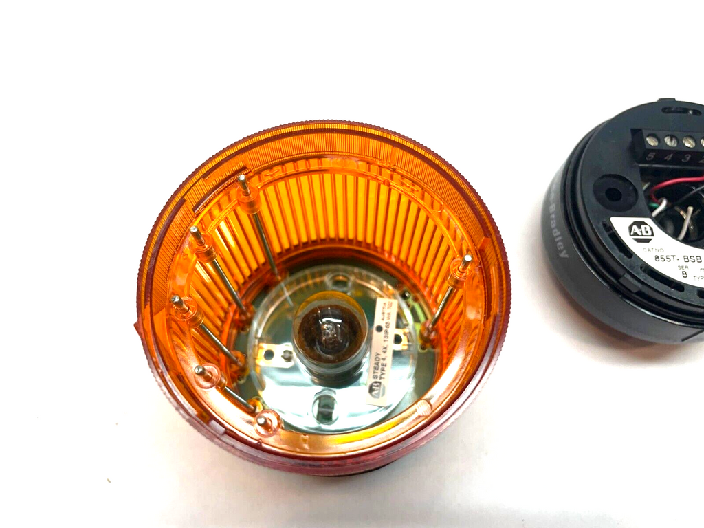 Allen Bradley 855T-B24DN5 Ser. B Amber / Orange Stack Light w/ 855T-BSB Base