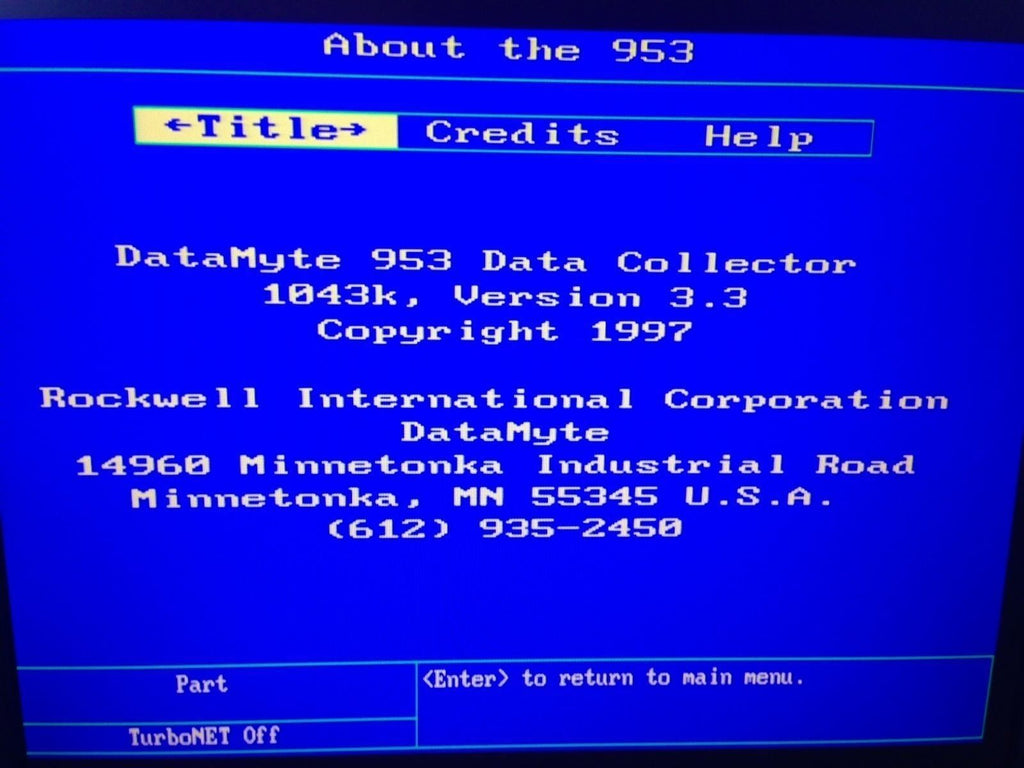 Model: 953-07 Data Collection System 1043k, Version 3.3