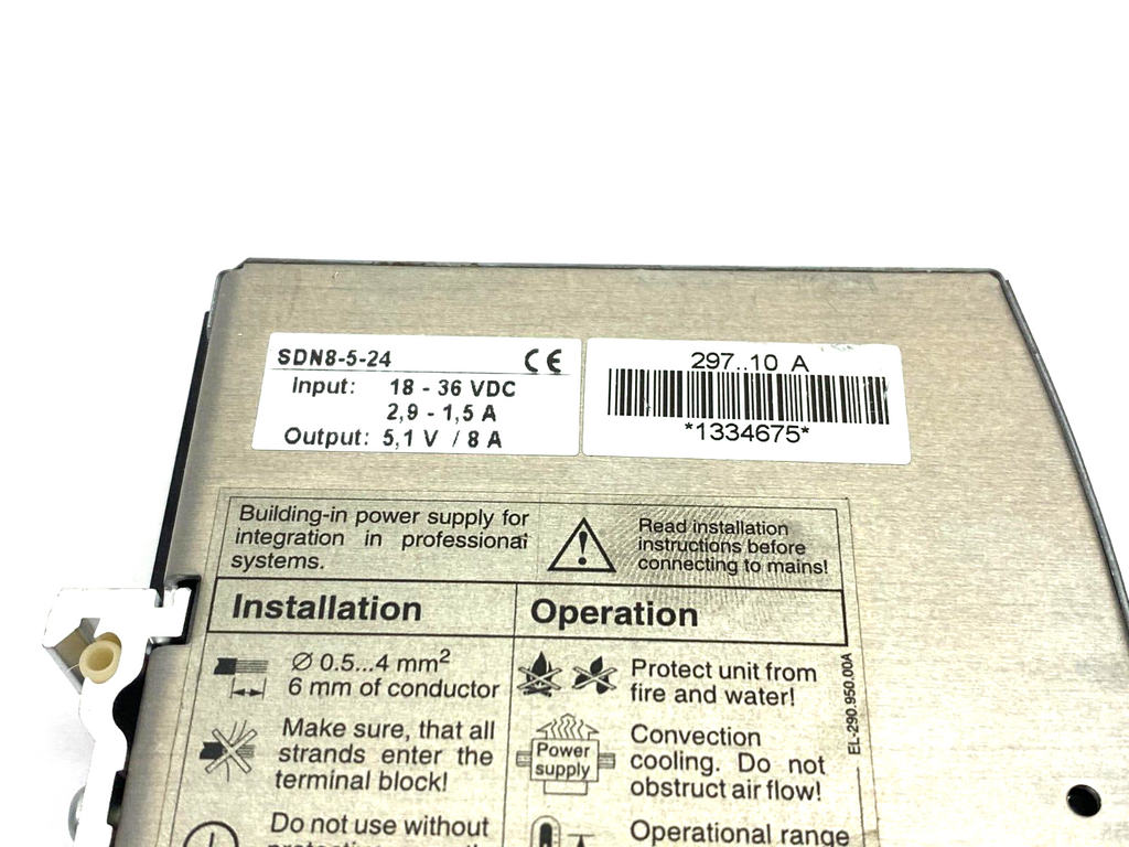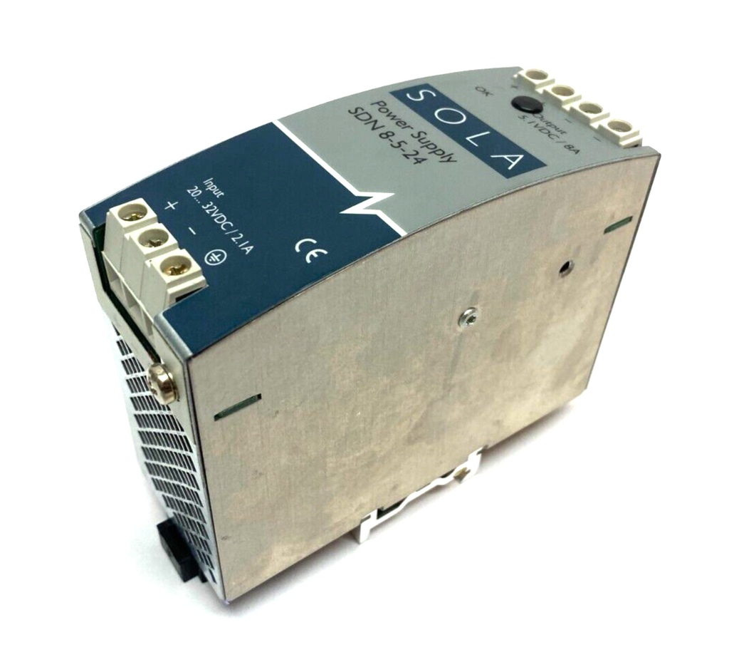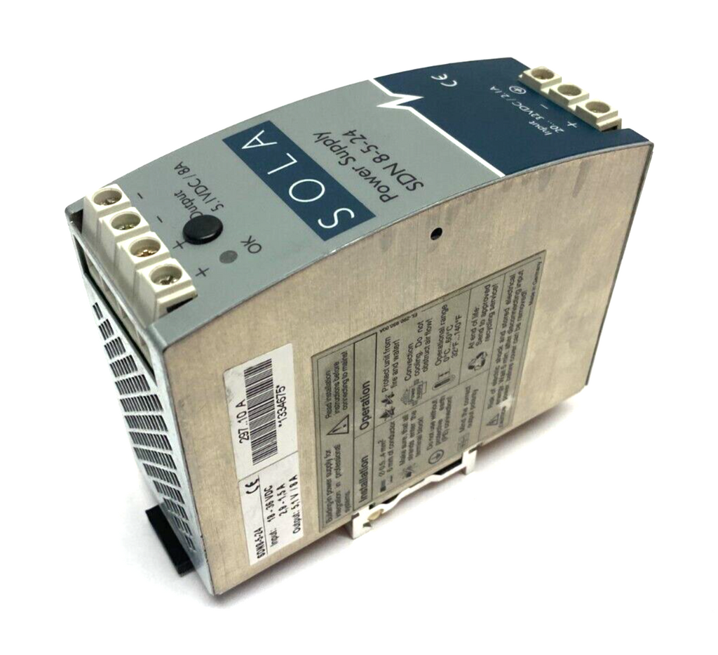 Emerson SOLA SDN8-5-24 Power Supply 18-36VDC 2, 9-1, 5A Input 5, 1V/ 8A Output