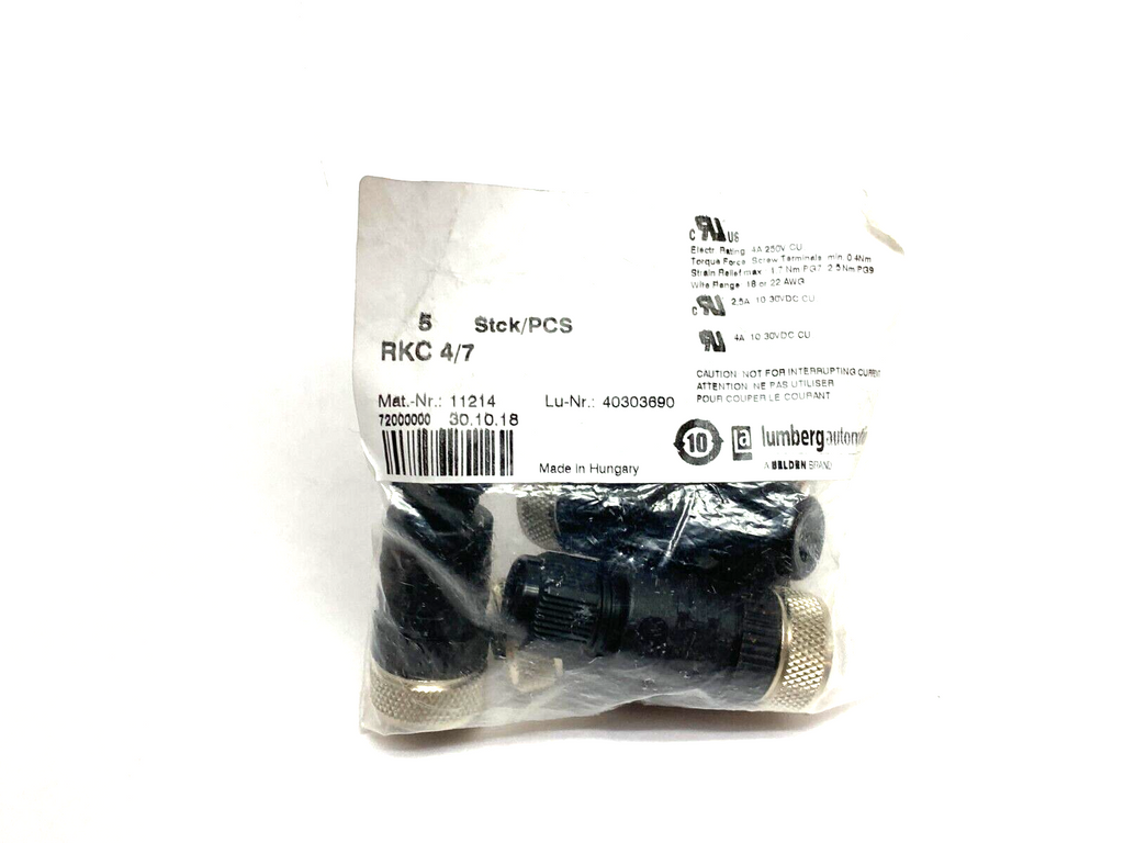 Lumberg Automation RKC 4/7 Field Attachable Connector M12 4-Pin 11214 PKG OF 5