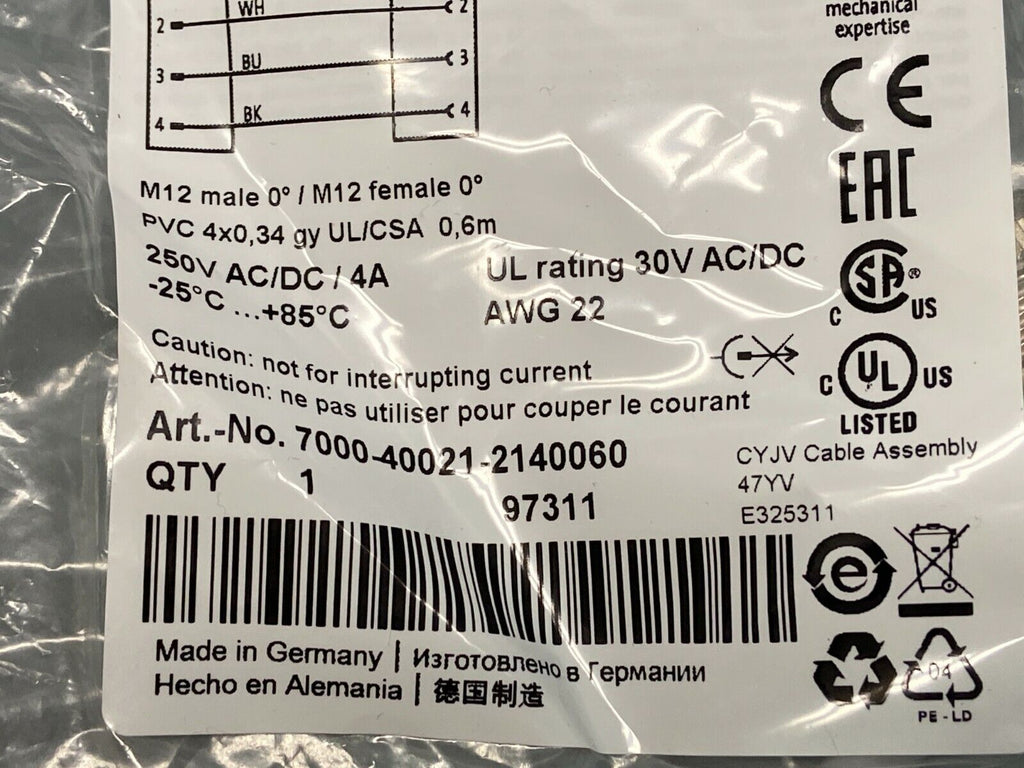 Murr Electronik 7000-40021-2140060 Double-Ended Cordset