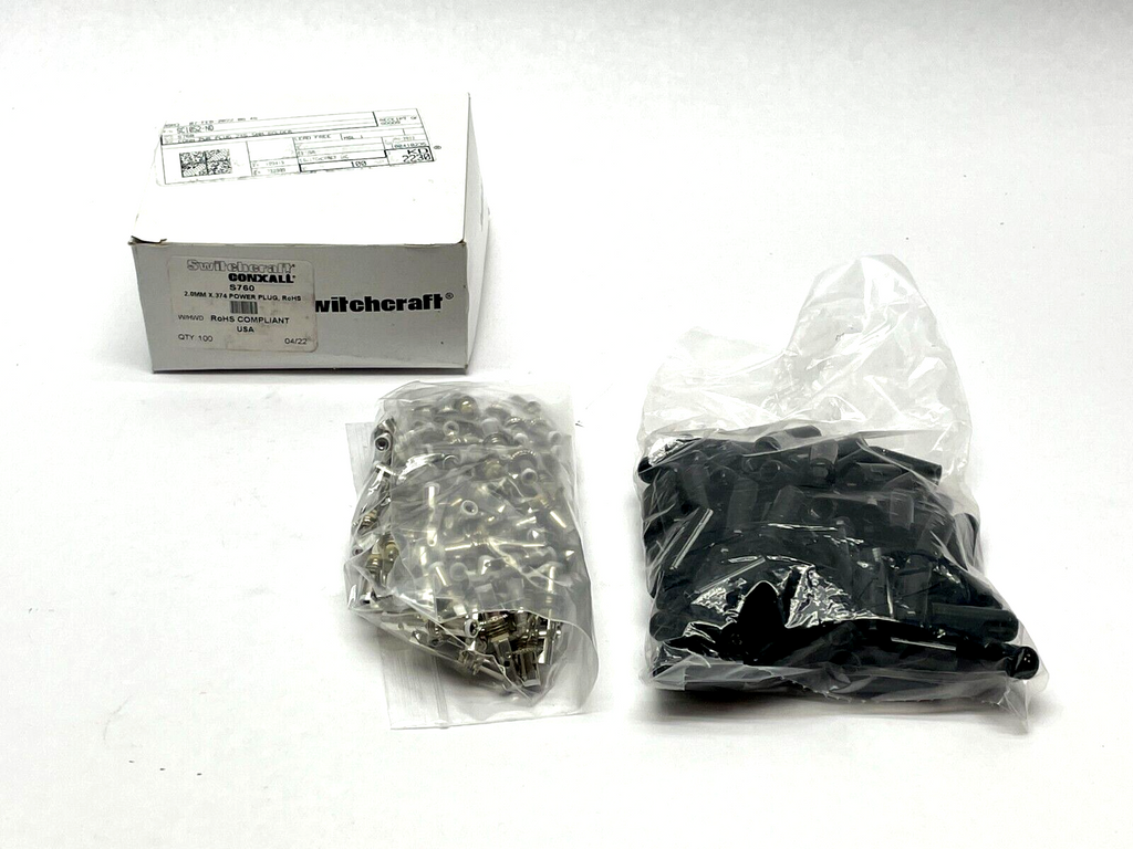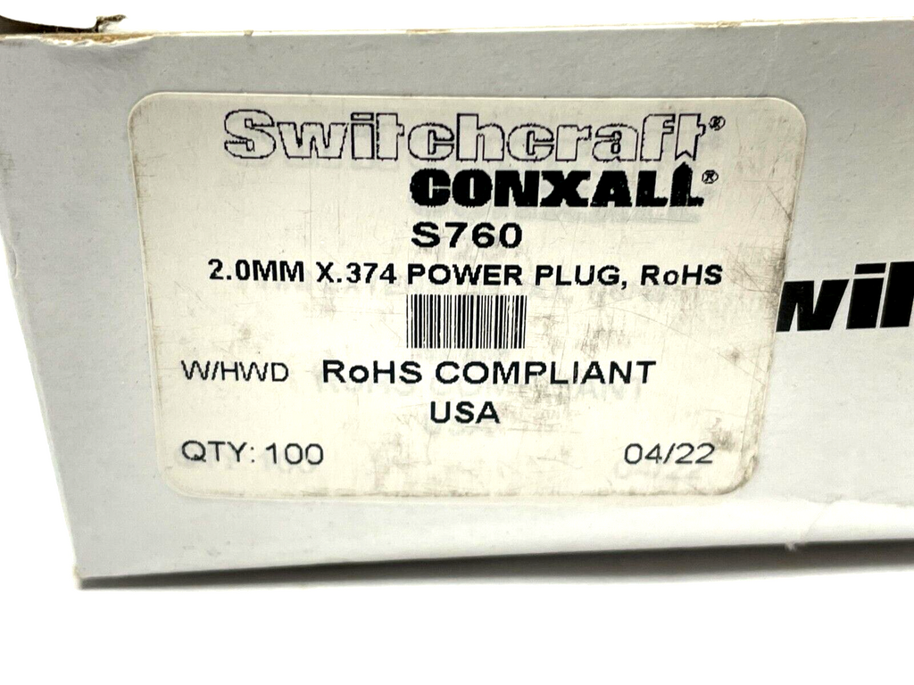 Switchcraft S760 Power Barrel Connector Plug 2 x 5.5mm Solder PKG OF 90
