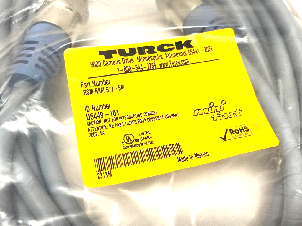 Turck RSM RKM 557-5M Minifast DeviceNet Double Ended Cordset U5449-101