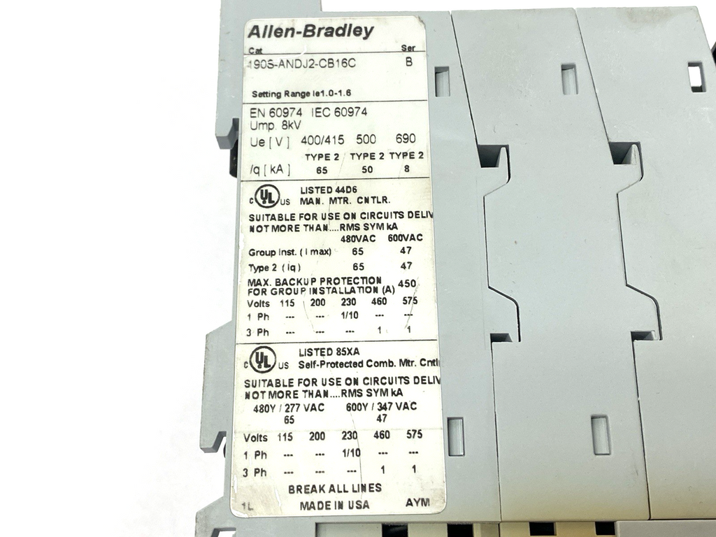 Allen Bradley 190S-ANDJ2-CB16C Ser. B Compact Starter MISSING TERMINAL BLOCK