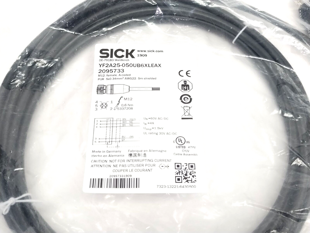 Sick YF2A25-050UB6XLEAX Sensor/Actuator Cable M12 5-Pin To Leads 5m 2095733
