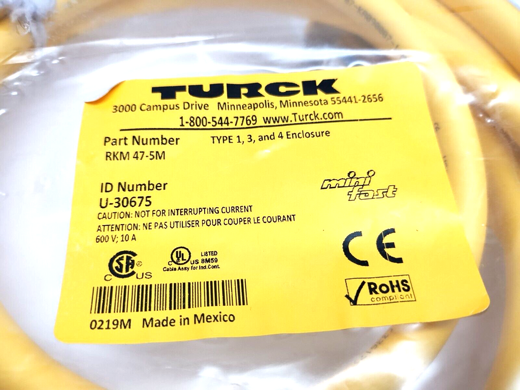 Turck RKM 47-5M Single Ended Cordset 4-Pin 7/8" Female 5m U-30675