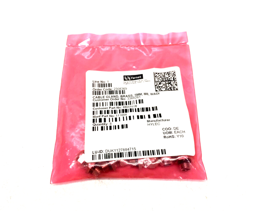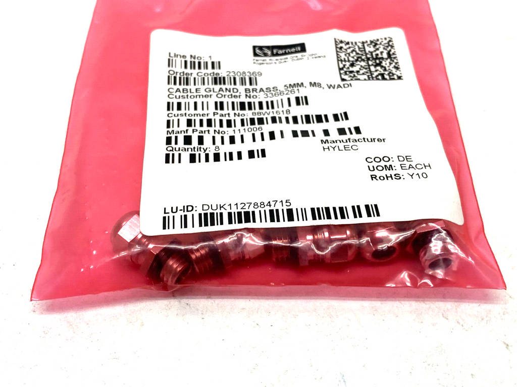 Hylec 111006 Nickel Plated Brass Cable Gland 5mm M8 WADI PKG OF 8 - New