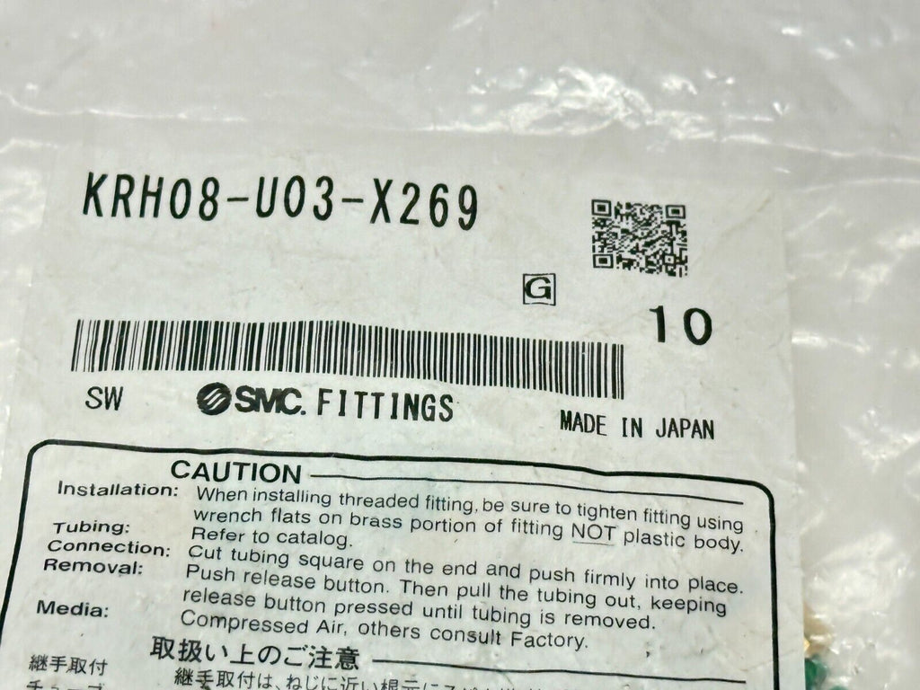 SMC KRH08-U03-X269 Pneumatic One Touch Fittings 3/8" PKG OF 10