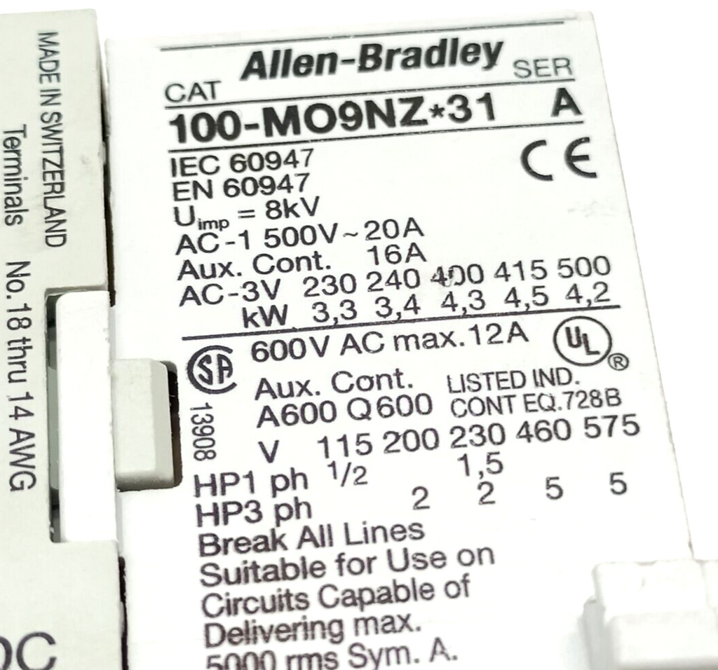 Allen Bradley 100-M09NZ2431 Ser. A Contactor 24VDC