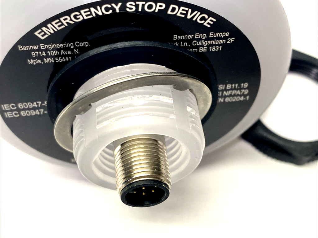 Banner SSA-EB1PLGR-0DECQ8 30mm Mount E-Stop M12 8-Pin 808878 DAMAGED THREADS