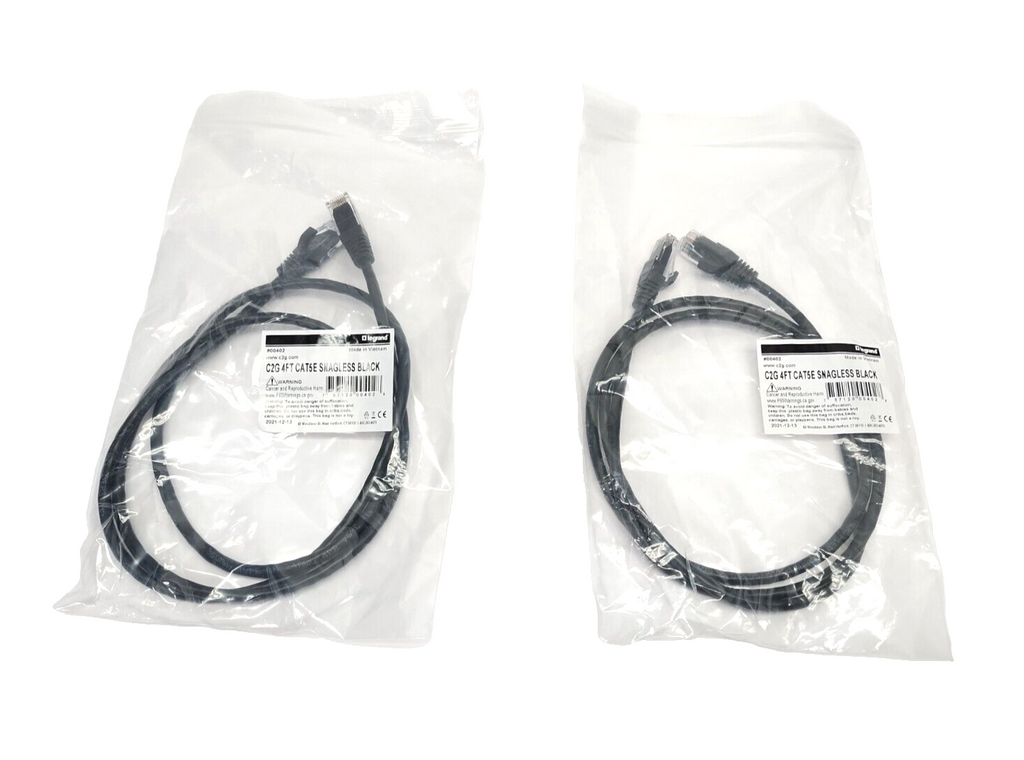 C2G 00402 CAT5E Snagless UTP RJ45 Network Patch Cable 4FT, Black, LOT OF 2