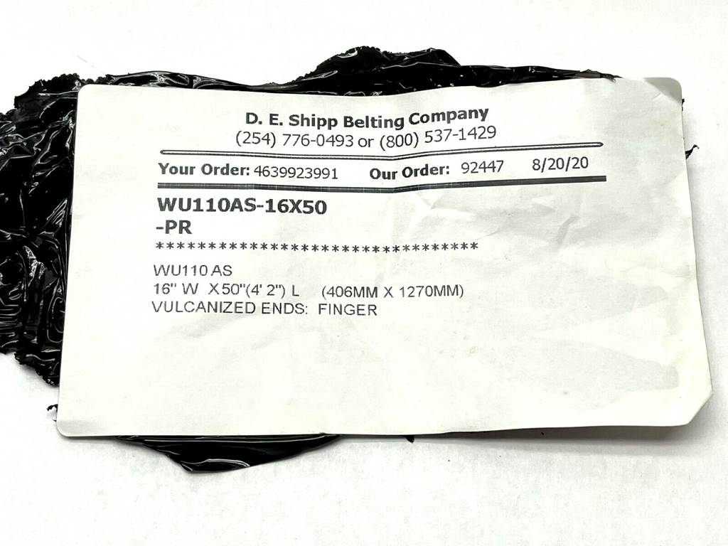 D.E. Shipp WU110AS-16X50-PR Vulcanized Belt 16" W x 50" L
