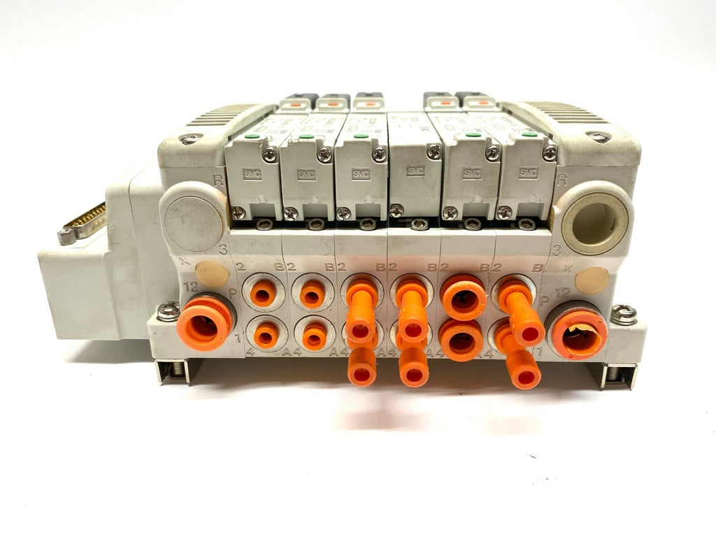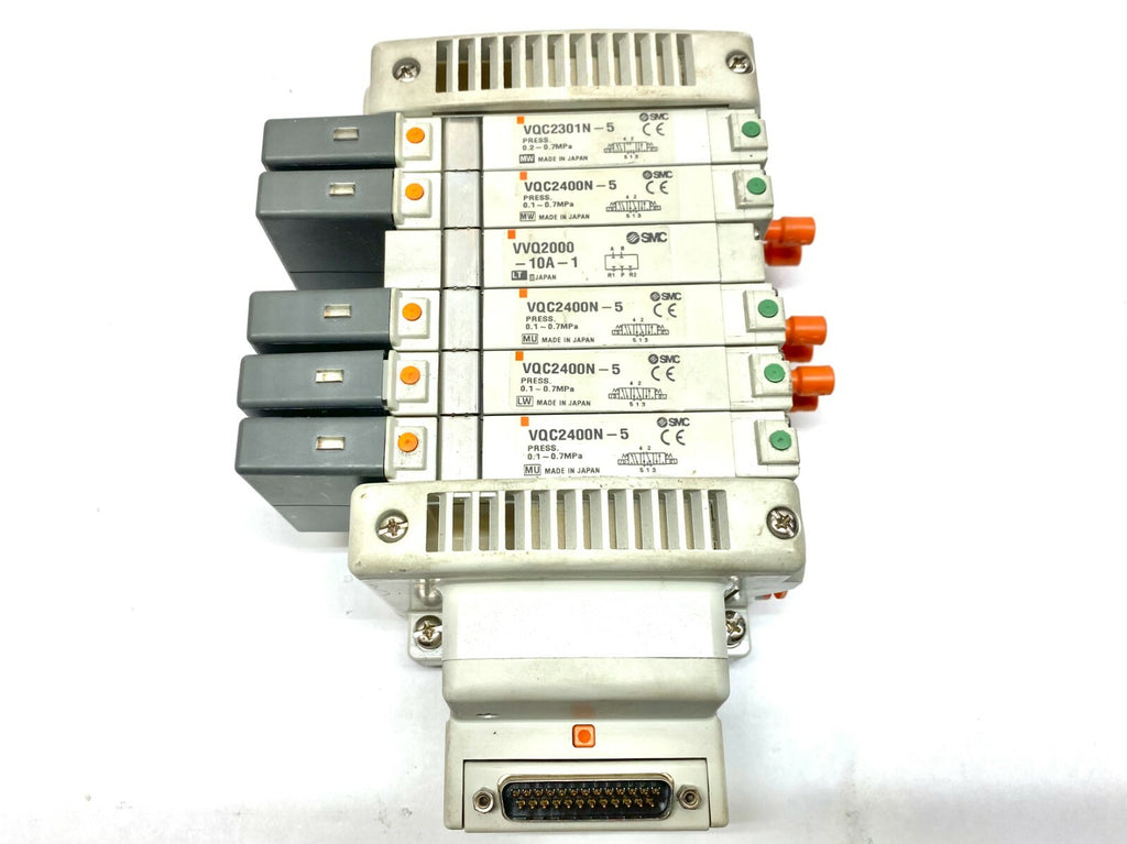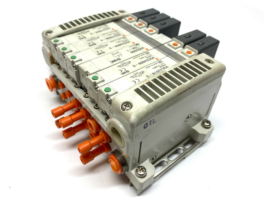 SMC VV5QC11-06 Pneumatic 6 Slot Manifold w/ VQC2400N-5 Valves