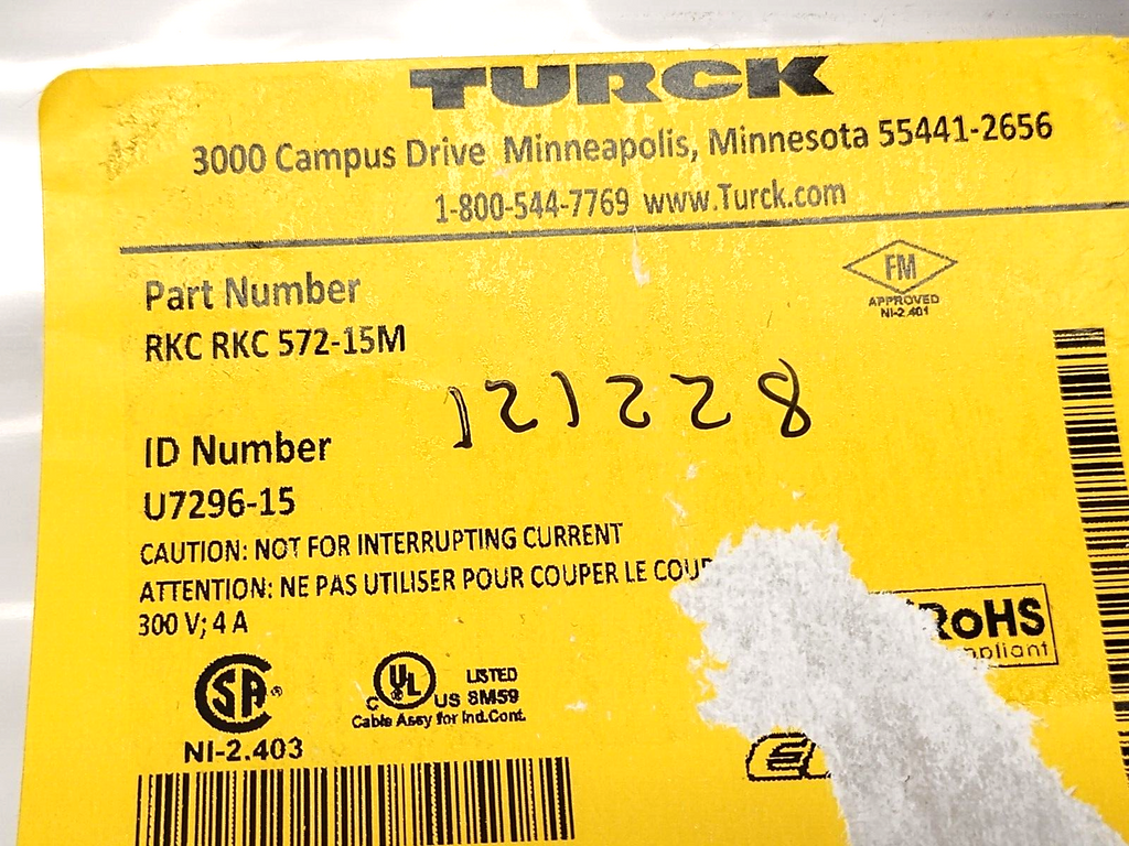 U7296-15, RKC RKC 572-15M | Turck Rkc Rkc 572-15M, U7296-15 - New
