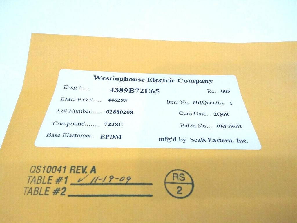 Westinghouse Electric Seals Eastern 4389B72E65 Rev 005 O-Ring 2Q08 EPDM Rubber