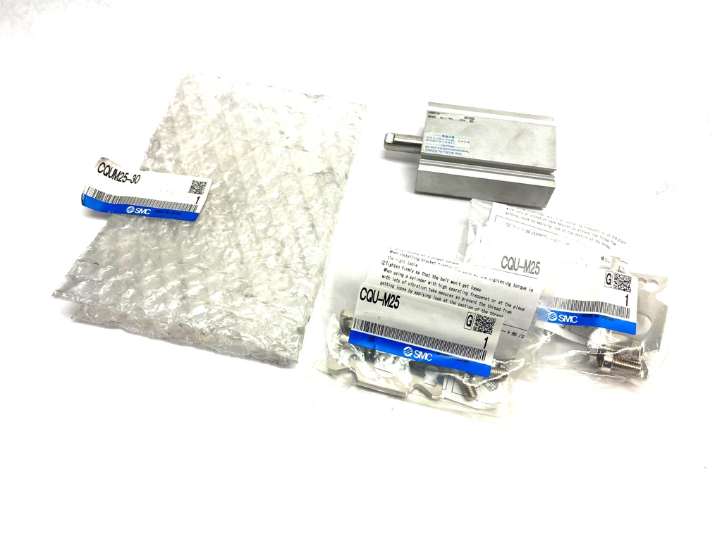 SMC CQUM25-30 Plate Type Compact Cylinder Dbl Acting w/ CQU-M25 Brackets