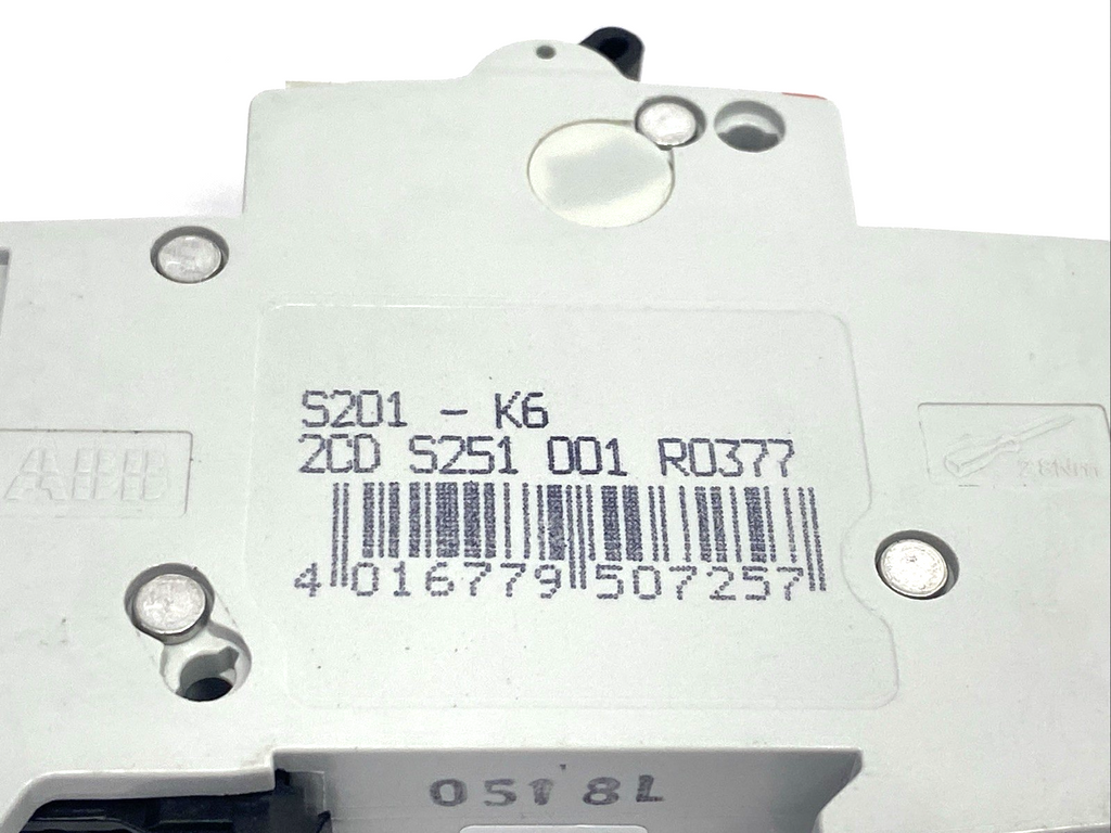 2CDS251001R0377,S201-K6 | ABB S201-K6 Miniature Circuit Breaker 6A 1-Pole 2CDS251001R0377 LOT OF 3 - Used