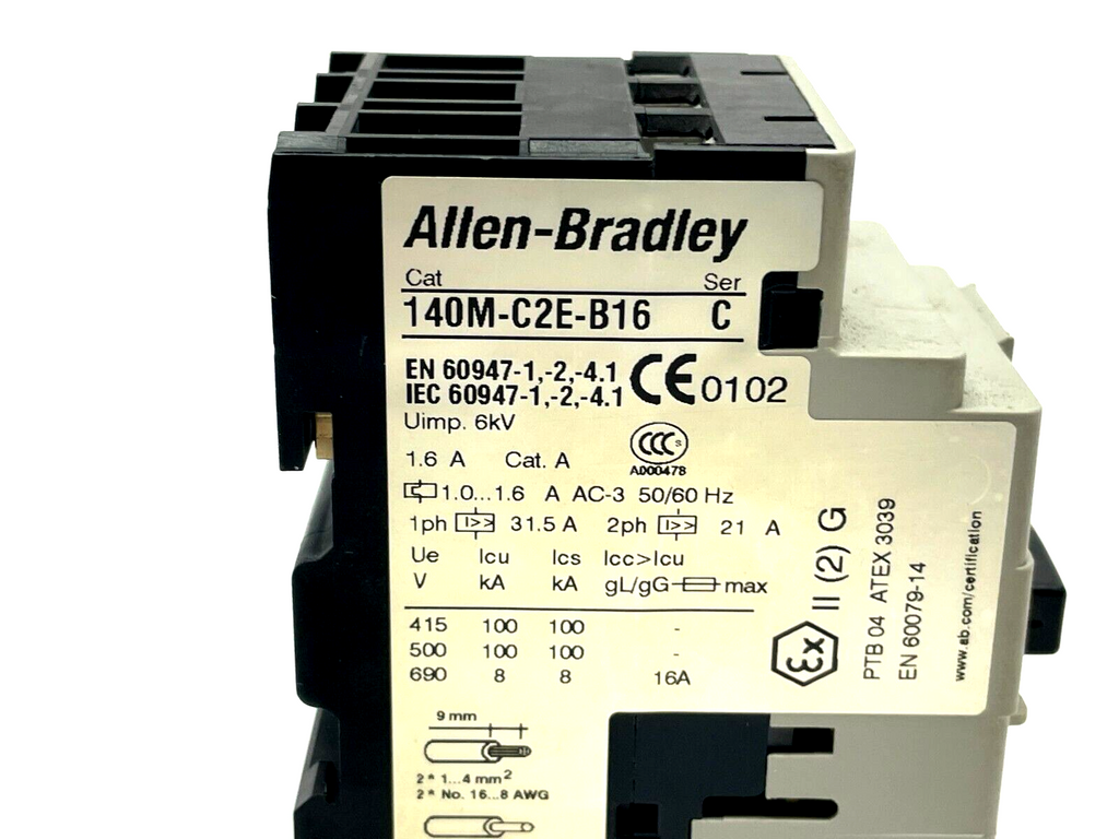 Allen Bradley 140M-C2E-B16 Ser. C Motor Starter w/ 140M-C-AFA11 Aux Contact