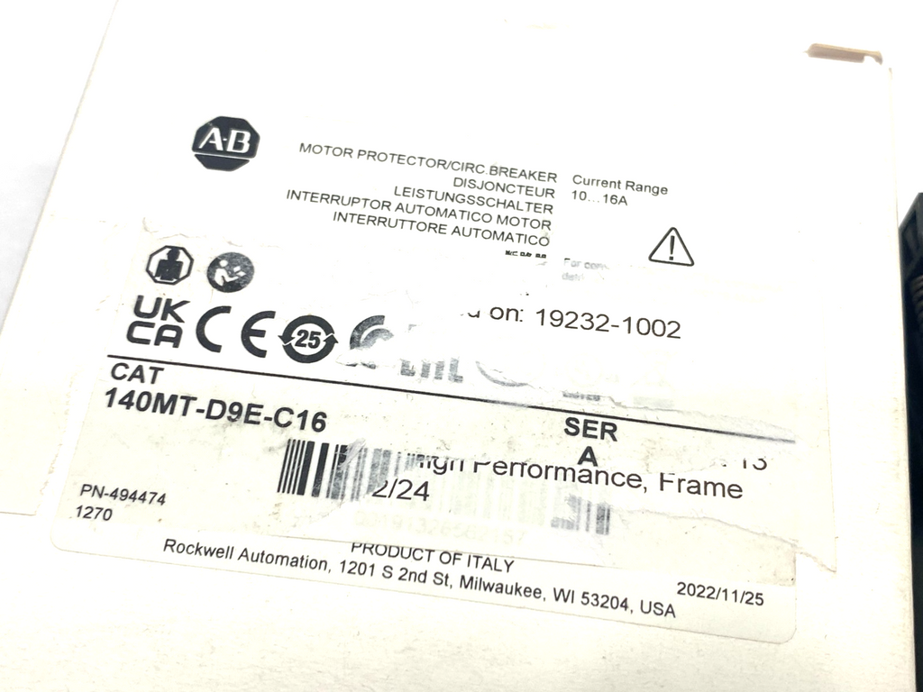 140MT-D9E-C16 | Allen Bradley Ser. A Motor Protection Breaker 10-16A - New – Open box