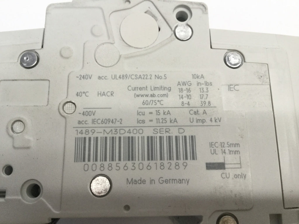 Allen Bradley 1489-M3D400 Ser D Circuit Breaker, 1498-M D 40A, 3P