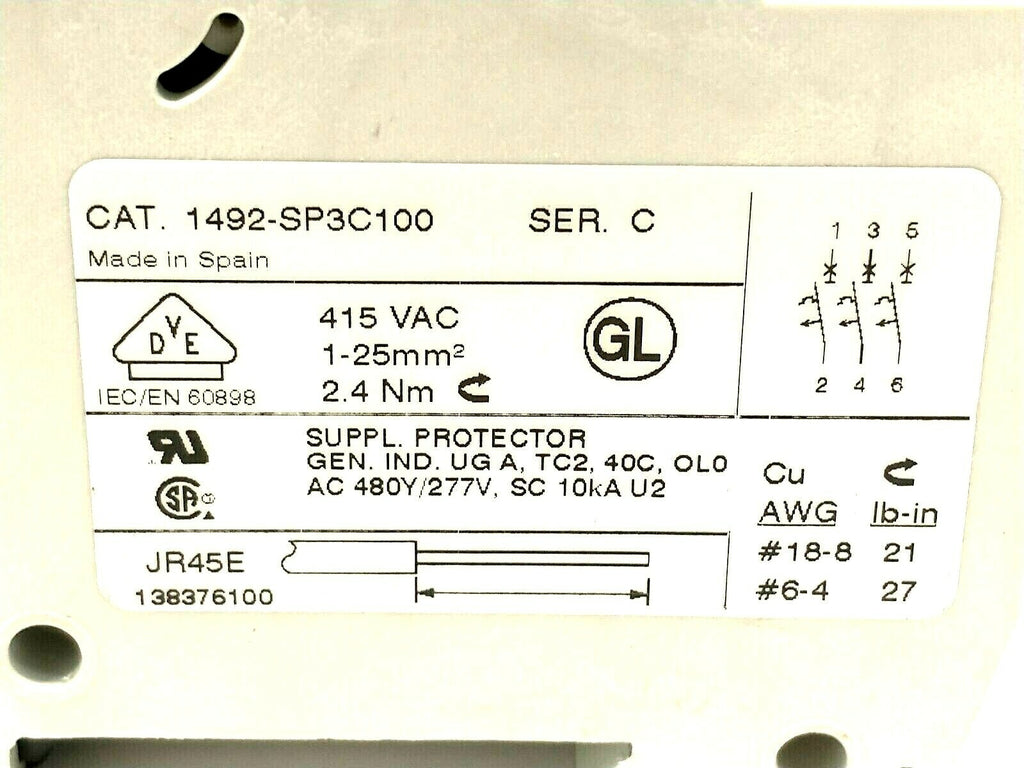 1492-SP3C100 | Allen Bradley Ser. C 10A Miniature Supplementary Circuit Breaker - Used
