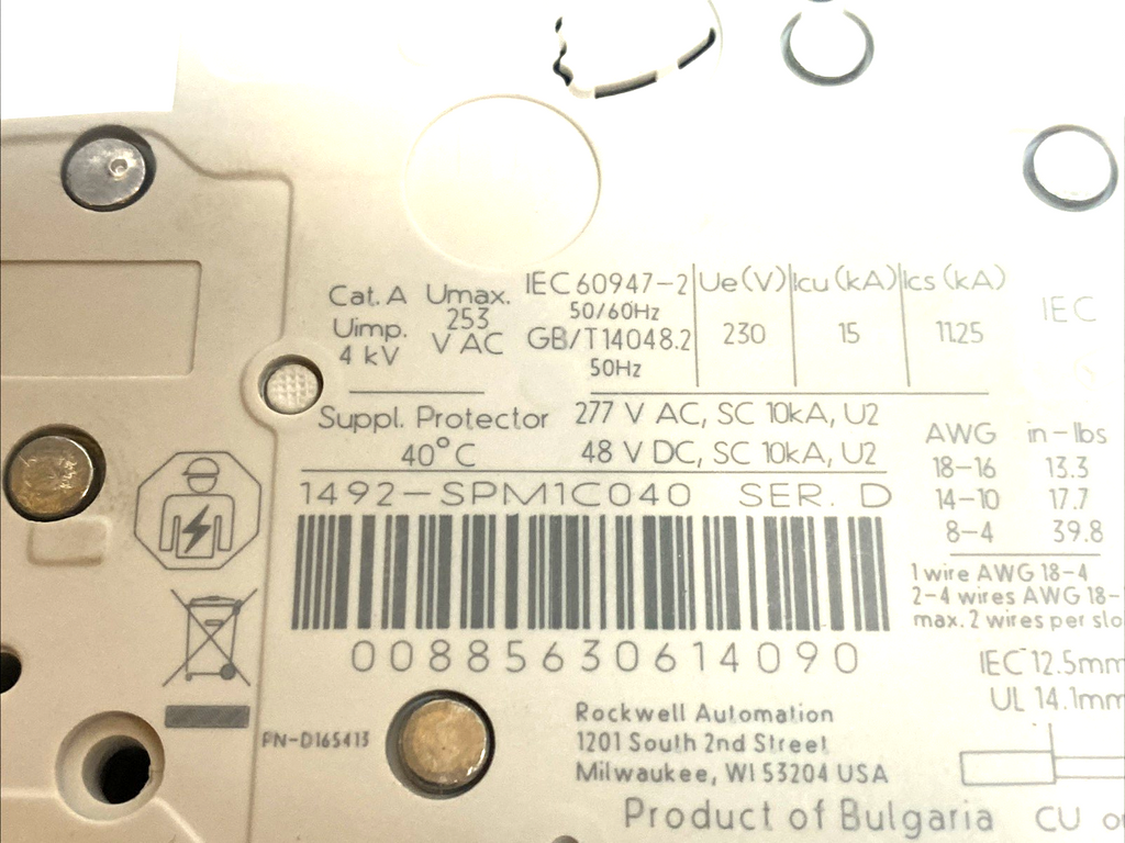 Allen-Bradley 1492-SPM1C040 MCB 1P 4A Type C 277VAC 48VDC SER D LOT OF 2