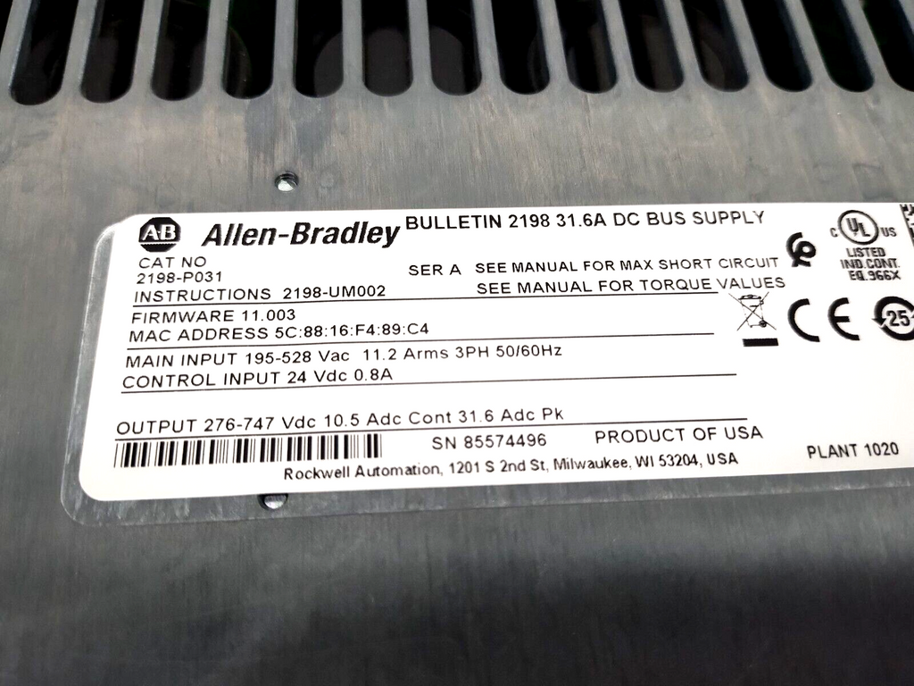 Allen Bradley 2198-P031 Ser. A Kinetix 5700 Servo System DC Bus Supply Unit