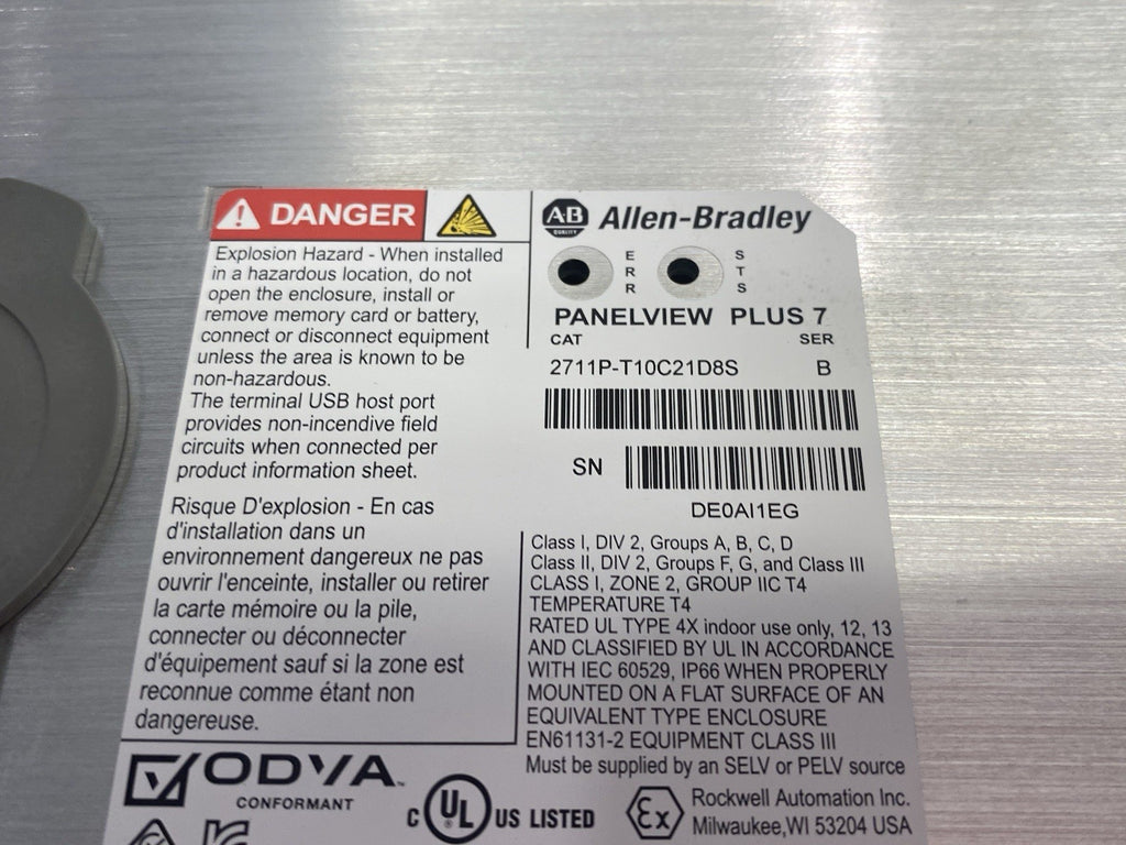 Allen Bradley 2711P-T10C21D8S Ser. B Panelview Plus 7 Standard 10.4" Terminal
