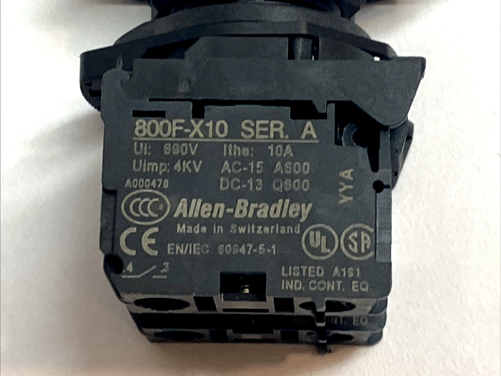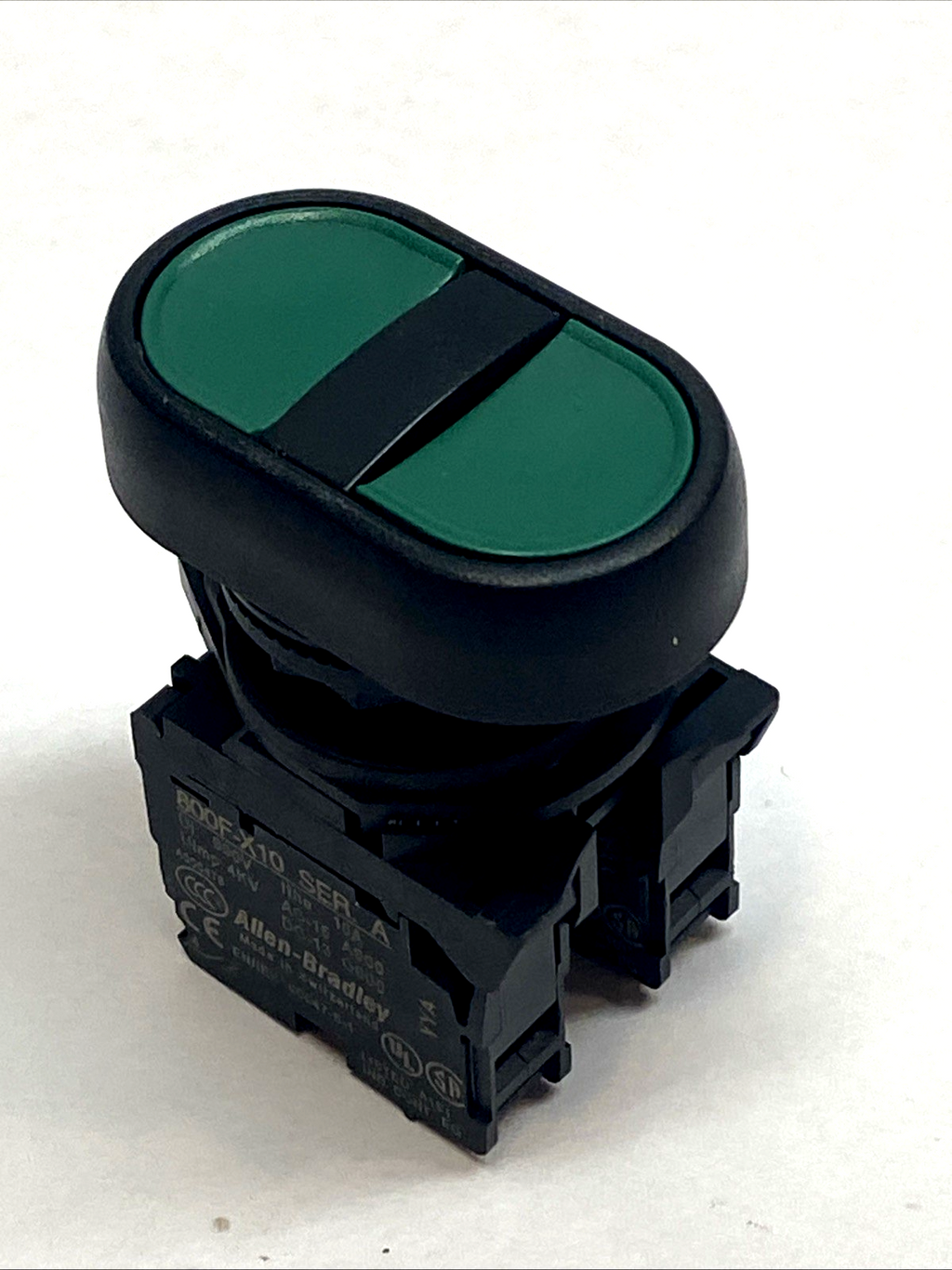 Allen-Bradley 800FP-U2F3F3 Green 2-Pos Push Button 22mm w/ 800F-X10 2NO