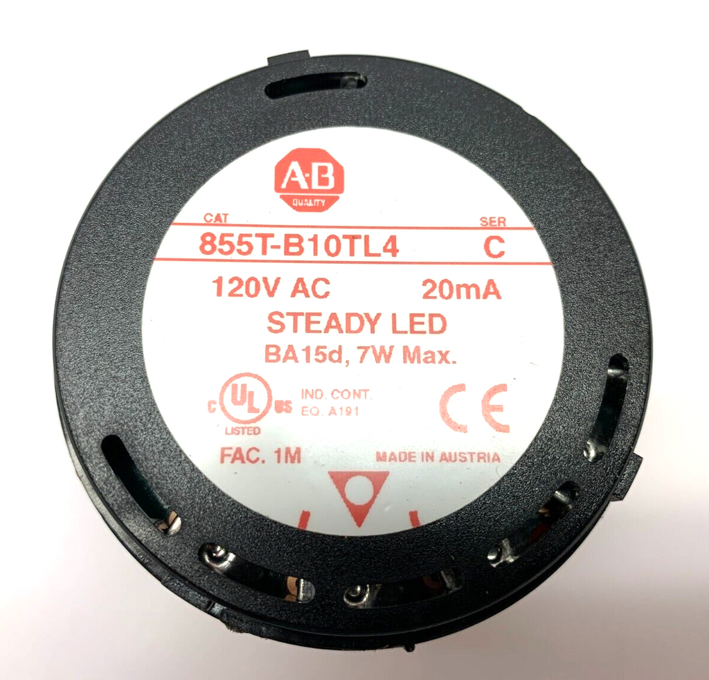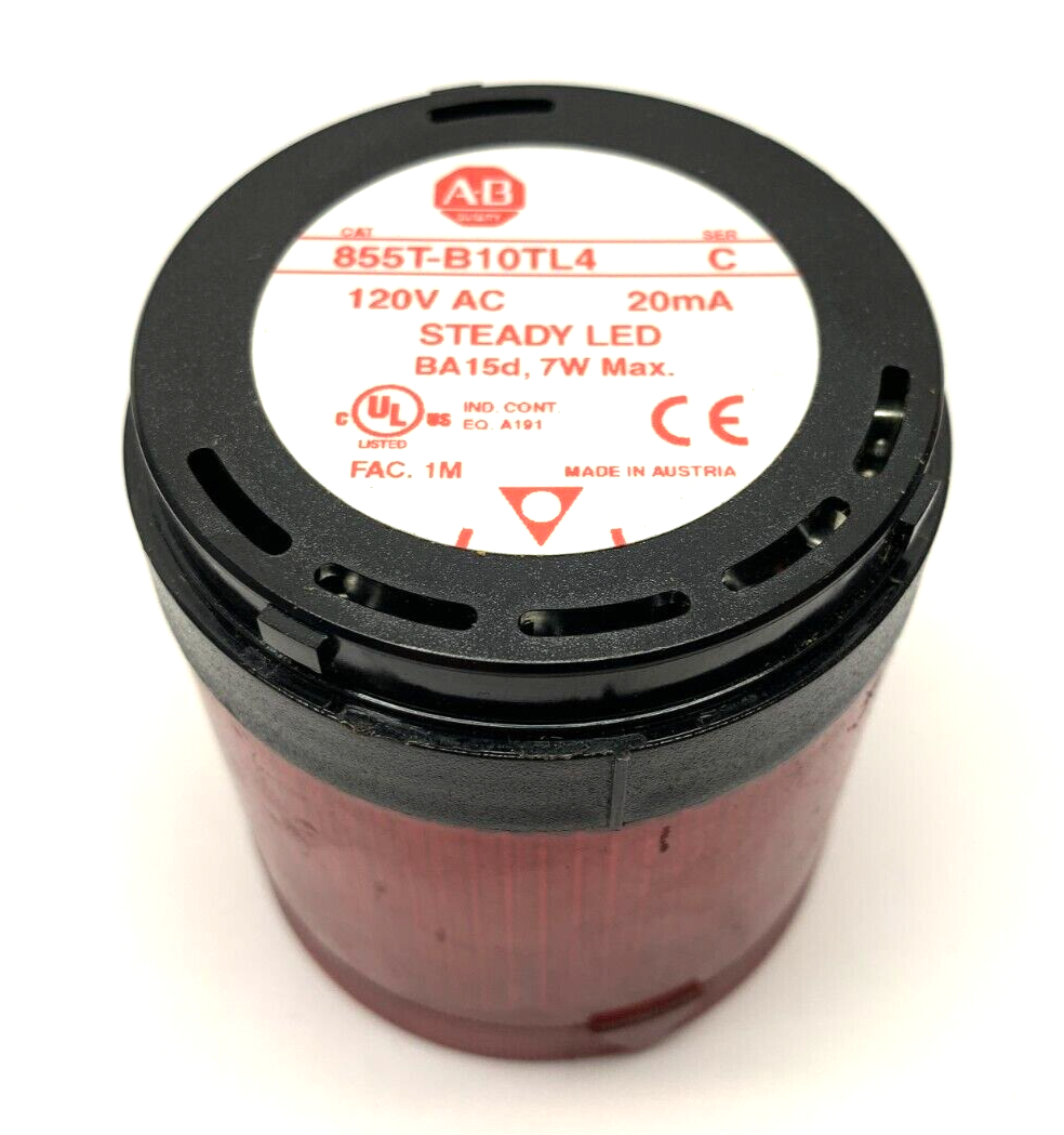 Allen Bradley 855T-B10TL4 Ser. C 70mm Red Steady LED Stack Light 120VAC