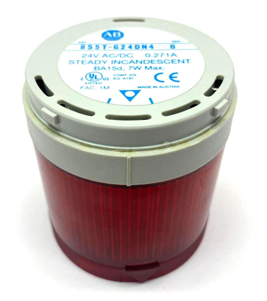 Allen Bradley 855T-G24DN4 Ser. B Steady Incandescent Stack Light RED NO SEAL