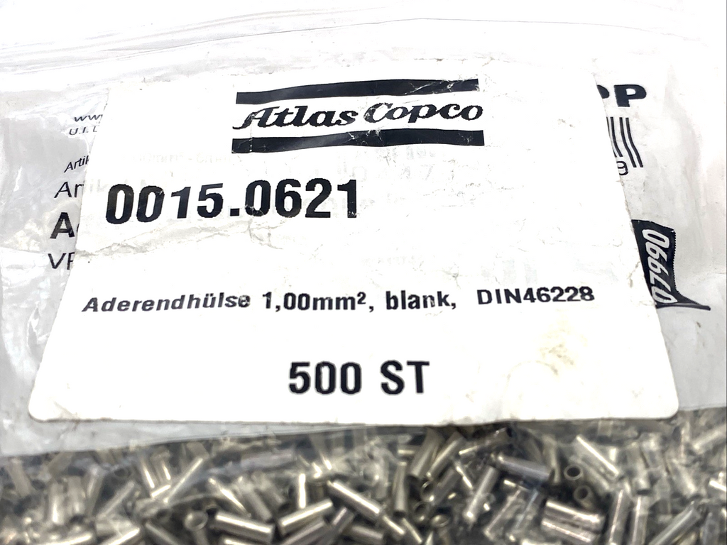 0015.0621 | Atlas Copco Blank Contact Ferrule 1.00mm² DIN46228 500-PACK - New – Open box