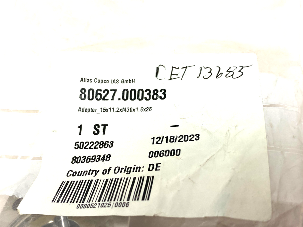 Atlas Copco 80627.000383 Adapter Fitting 15x11,2xM30x1,5x28