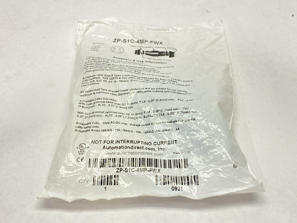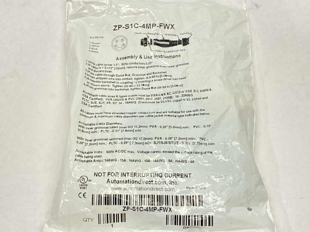 AutomationDirect ZP-S1C-4MP-FWX ZIPport 4-Pin Male Field-Wireable Connector