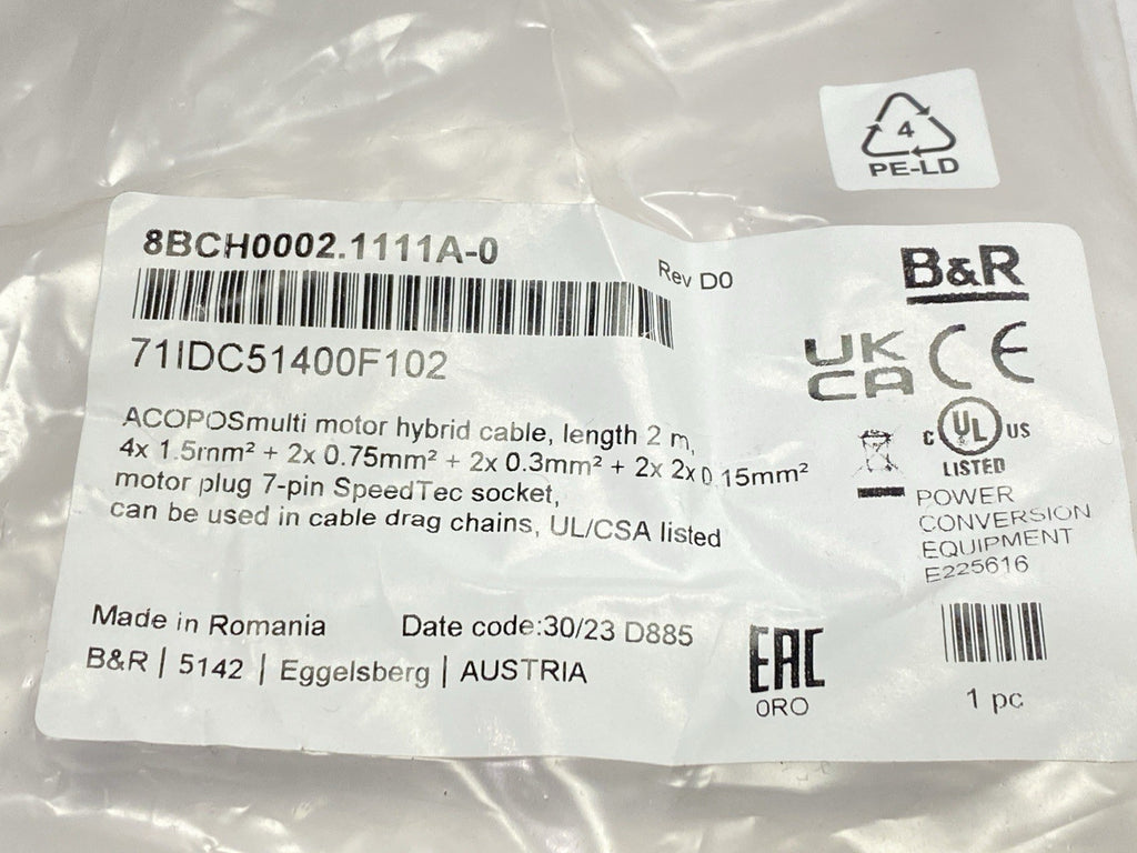 B&R Automation 8BCH0002.1111A-0 ACOPOSmulti Hybrid Motor Cable 2m