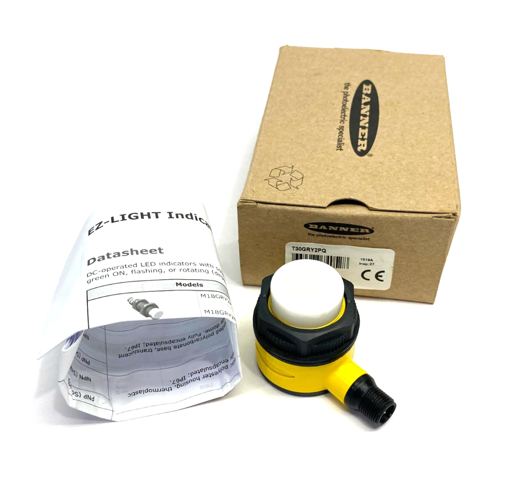 Banner T30GRY2PQ EZ-LIGHT Right Angle 30mm Indicator, Panel Mount 3-Color, 74052