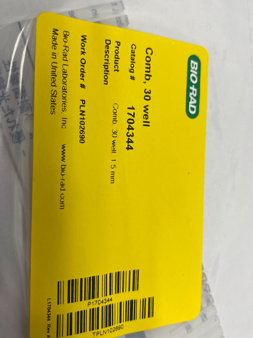Bio Rad 1704344 Adjustable Height Comb 30-Well 1.5mm for Sub-Cell/Mini Sub-Cell