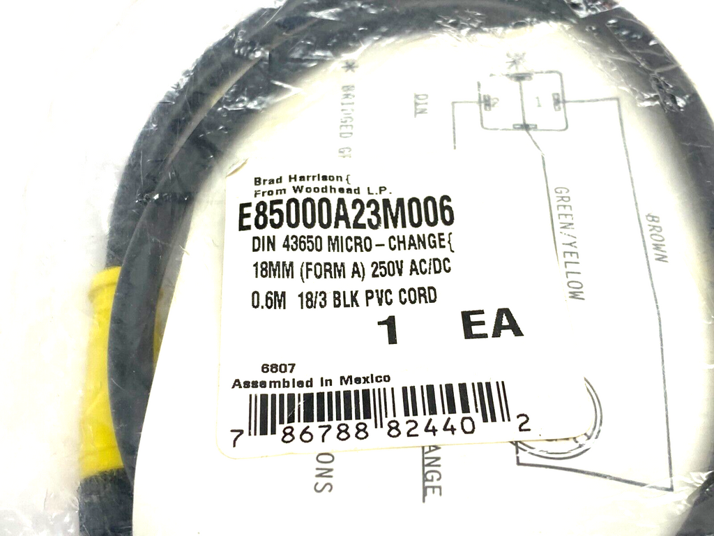 E85000A23M006 | Brad Harrison Micro-Change Din 43650 Cordset 18Mm 250V Ac/Dc - New – Open box