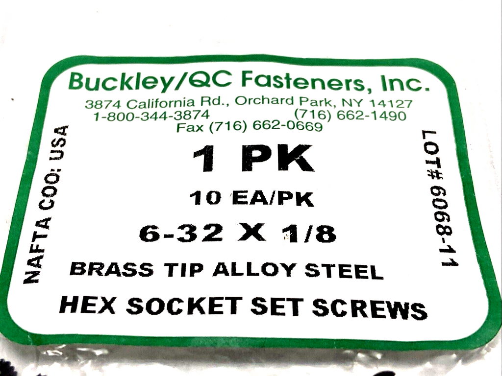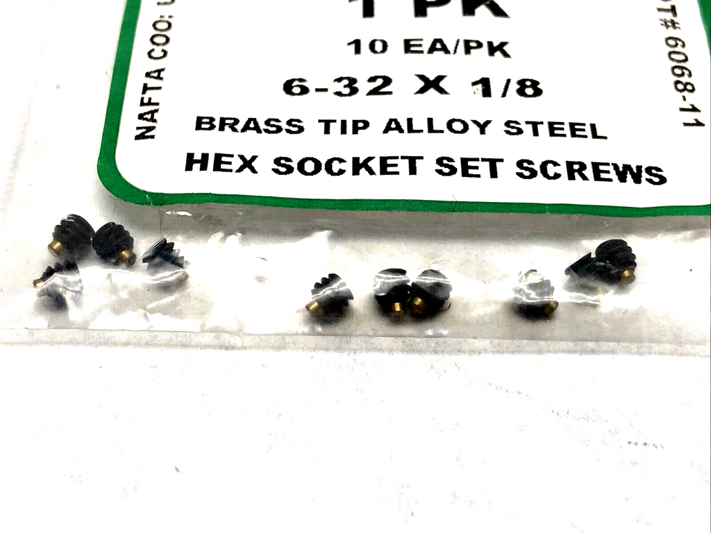 Buckley 6068-11 Hex Socket Set Screws Brass Tip 6-32 x 1/8 LOT OF 3 PKGS