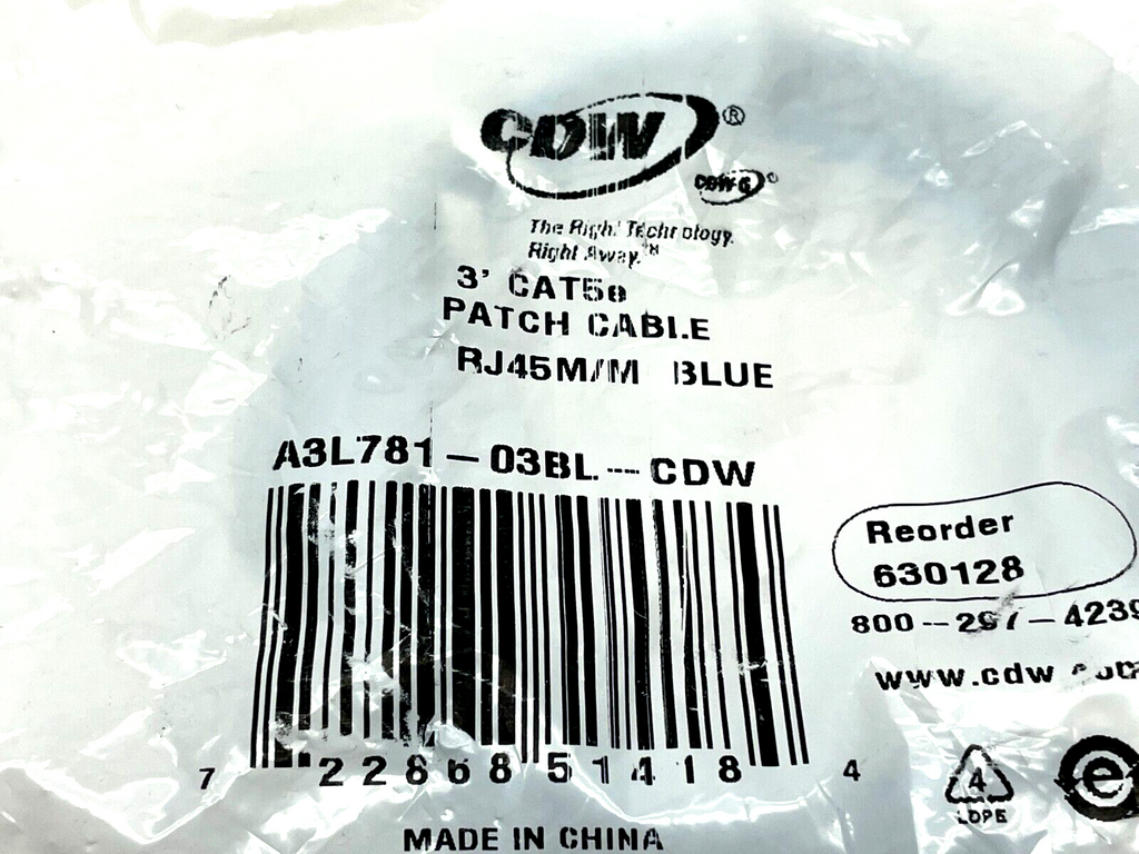 CDW A3L781-03BL-CDW Patch Cable 3' Length LOT OF 2