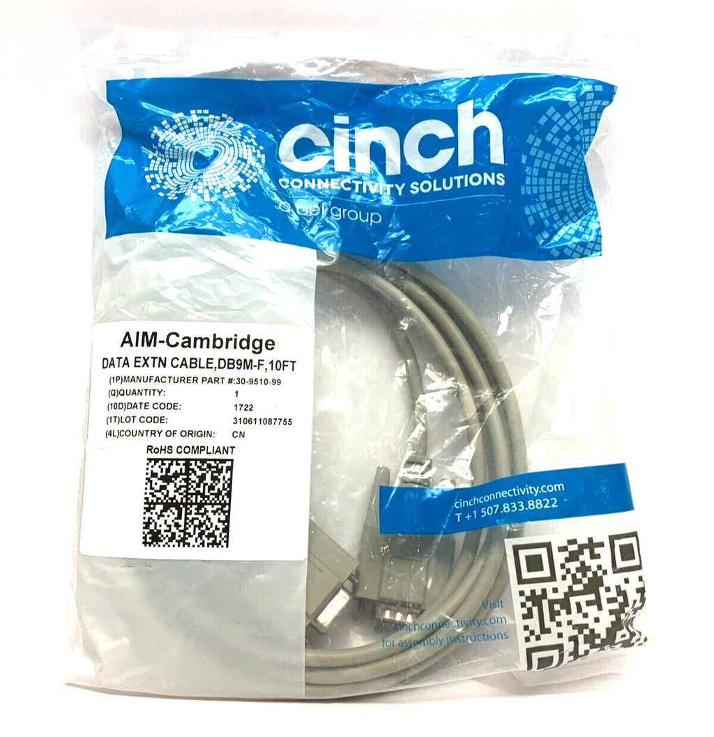 Cinch 30-9510-99 Data Extension Cable DB9M-F 10ft