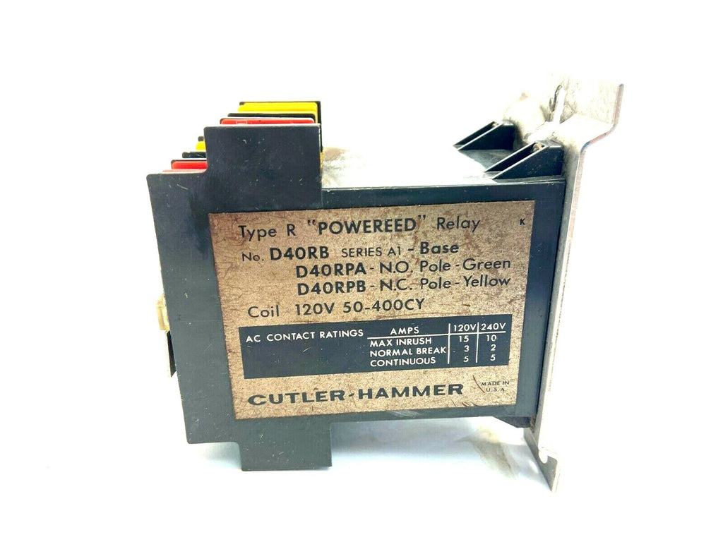 Cutler-Hammer D40RB Powereed Relay 2 x D40RPB N.C. Yellow 2 x D40RPA N.O. Green - Used