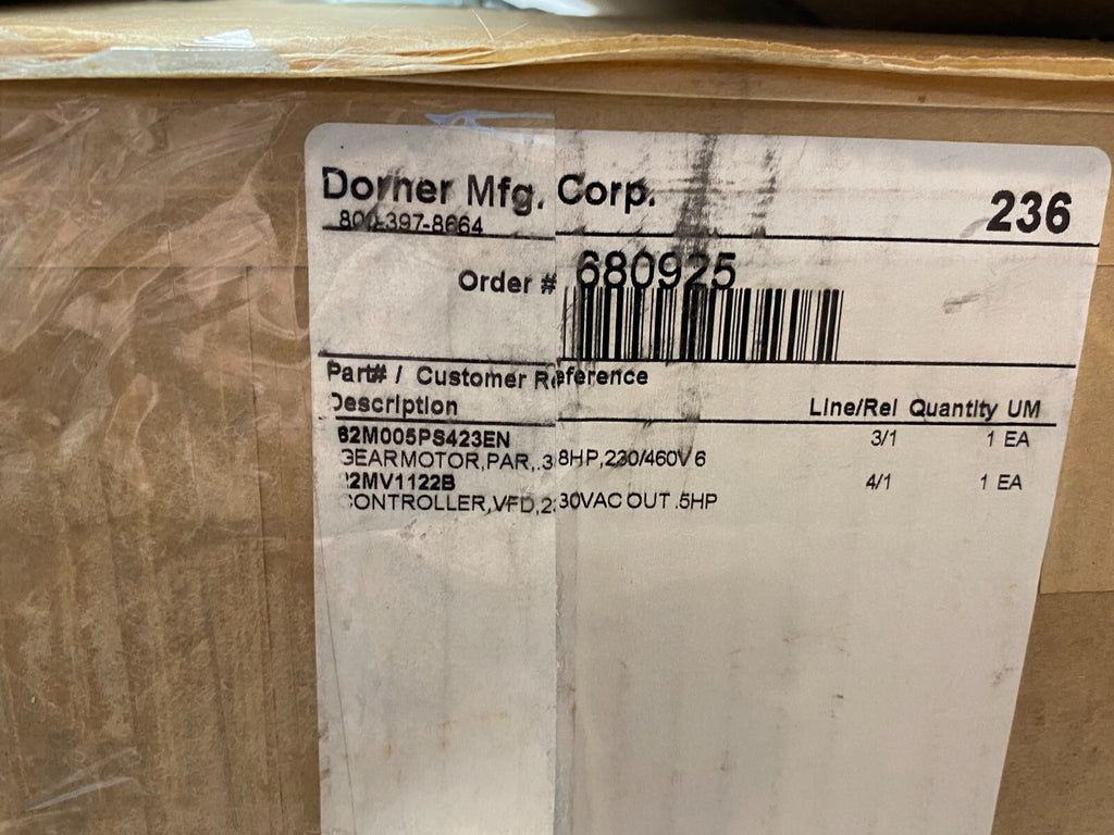Model: Parallel Gearmotor 3/8HP & VFD Controller 230V