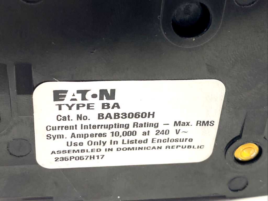 Eaton BAB3060H Type BA Thermal Magnetic Circuit Breaker 60A 10 kAIC 3P 240V