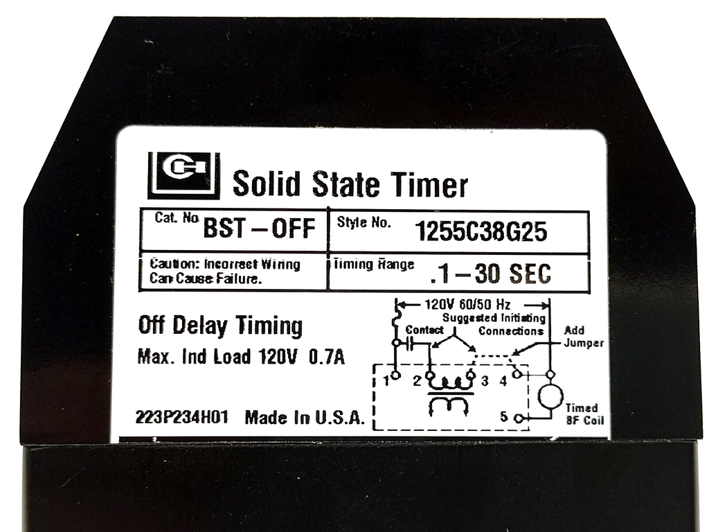 Eaton BST-OFF Industrial Control Relay, Solid State Timer 0.1-30 Sec 1255C38G25