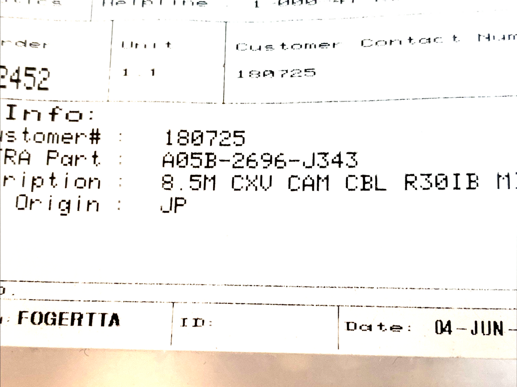 FANUC A05B-2696-J343 Waterproof Camera connection cable