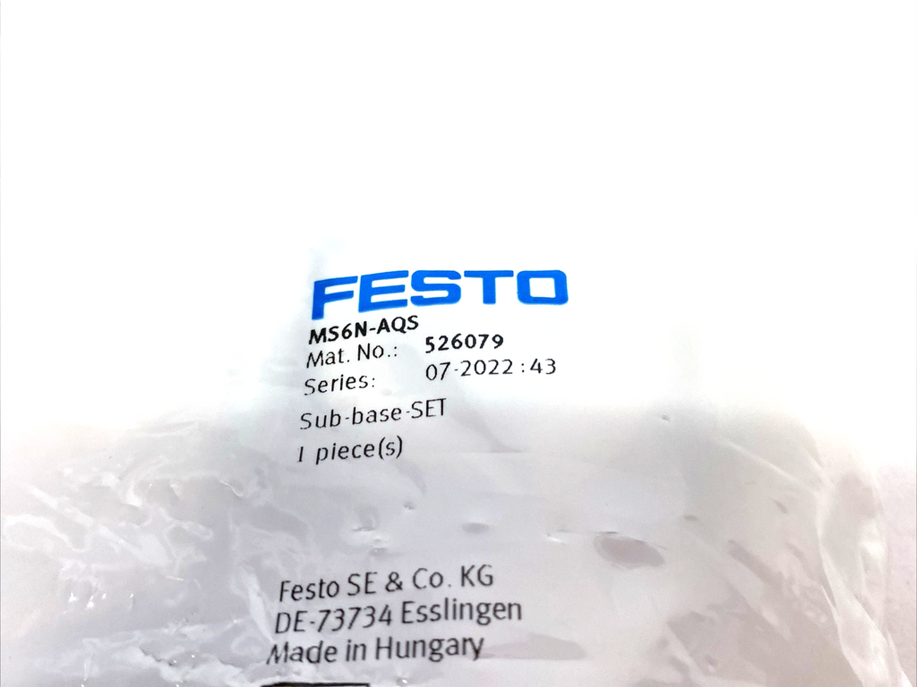Festo MS6N-AQS Size 6 Sub-Base SET 3/4" NPT Connection 526079