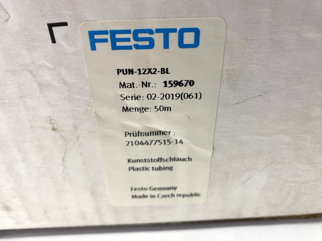Festo PUN-12X2-BL Blue Plastic Tubing 8mm ID 12mm OD 159670 CUT TO 9m